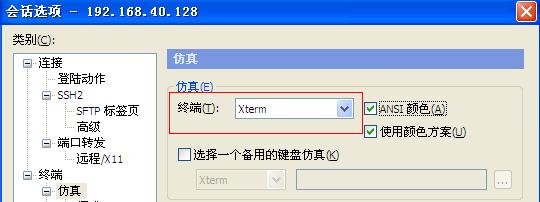 将终端类型修改为Xterm。